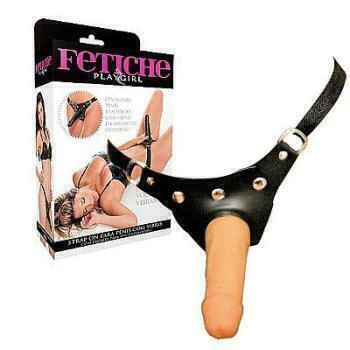 Cinta em courvin para pênis realístico com vibro em tamanho universal (entre os pênis realísticos 6, 8, 10 ou em diâmetro similares).